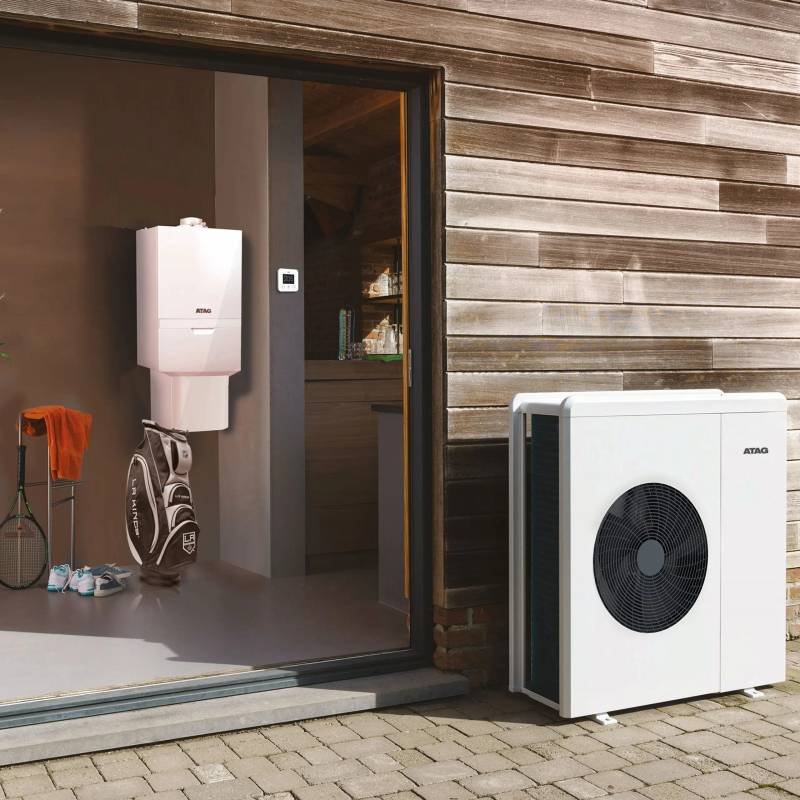 Deze warmtepomp onttrekt warmte uit de buitenlucht en geeft deze af aan het water van je verwarmingssysteem, zoals radiatoren of vloerverwarming.